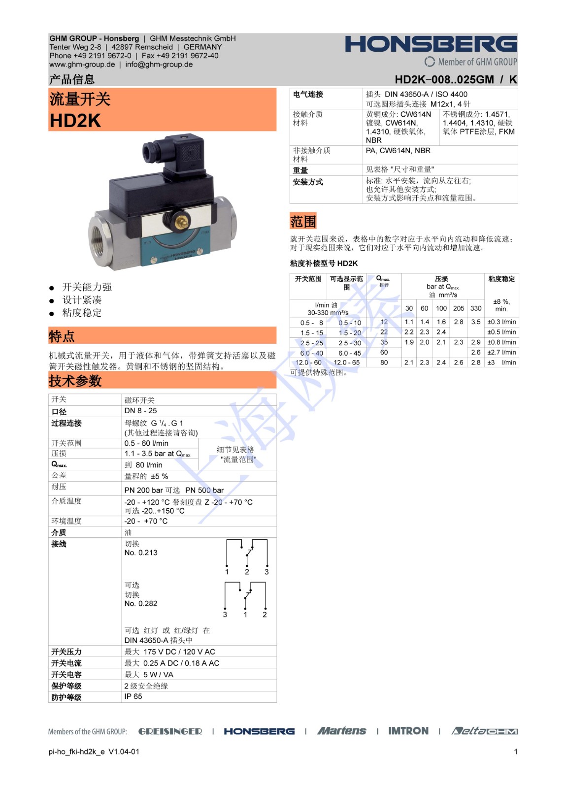 Honsberg有各種原理的流量開關(guān)和流量計(jì),例如活塞、擋板、熱式、渦輪、電磁等。